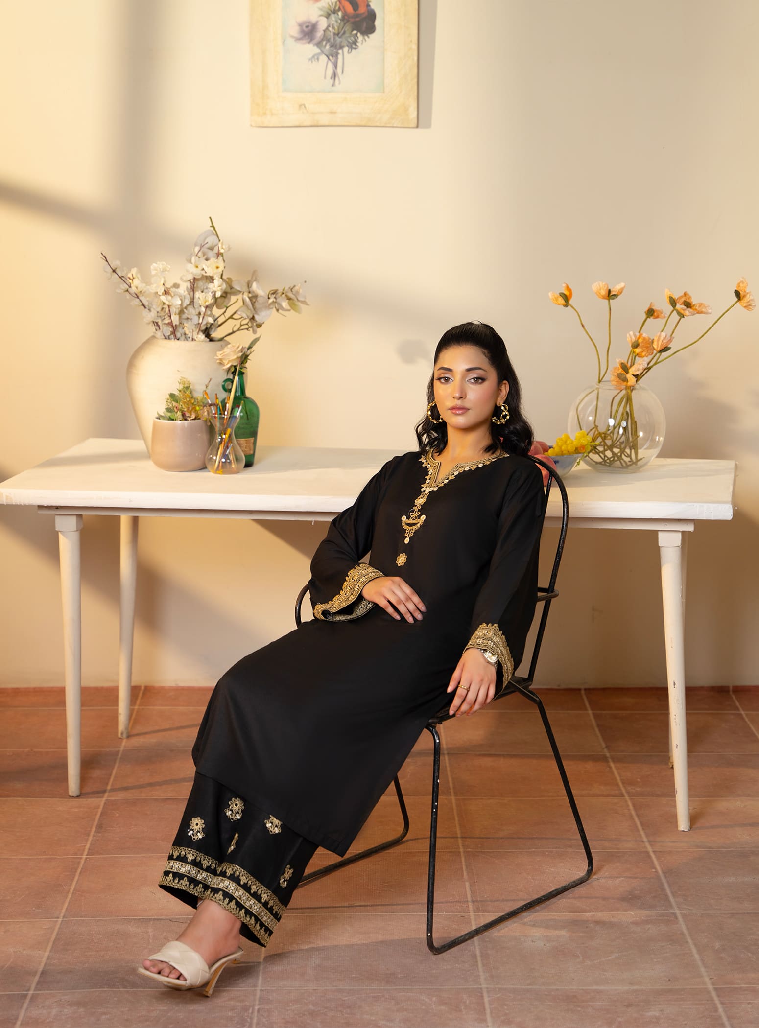 Embrace sophistication this winter with the Black Iris 3-Piece Kurta Set by Tawakal Closet. ✨
