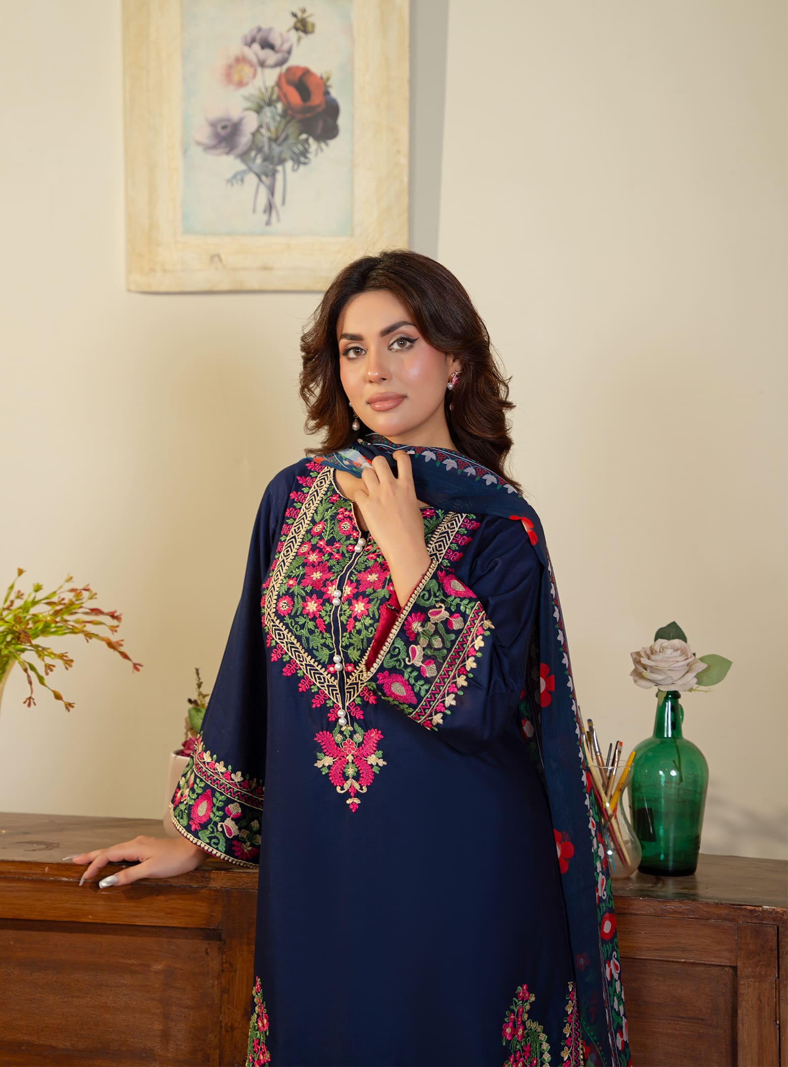 #MidnightGrace #EasternWear #FormalStyle #NavyBlueVibes #CottonChic #ElegantLooks
